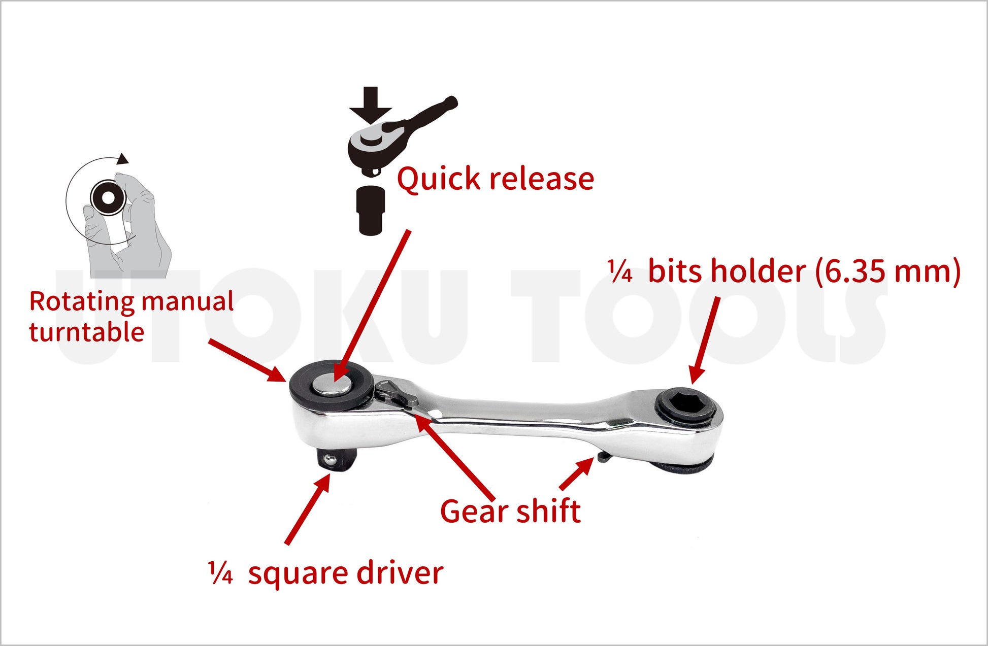 ◆90 tooth 1/4" square drive and bit ratchet function in one.