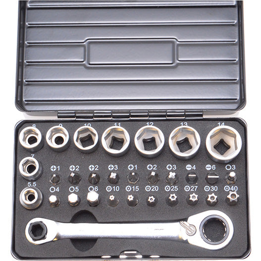 DEEN Low Profile 1/4 in. Drive Metric Socket and Half Cut Bit Set 30 Piece DNBRS31J