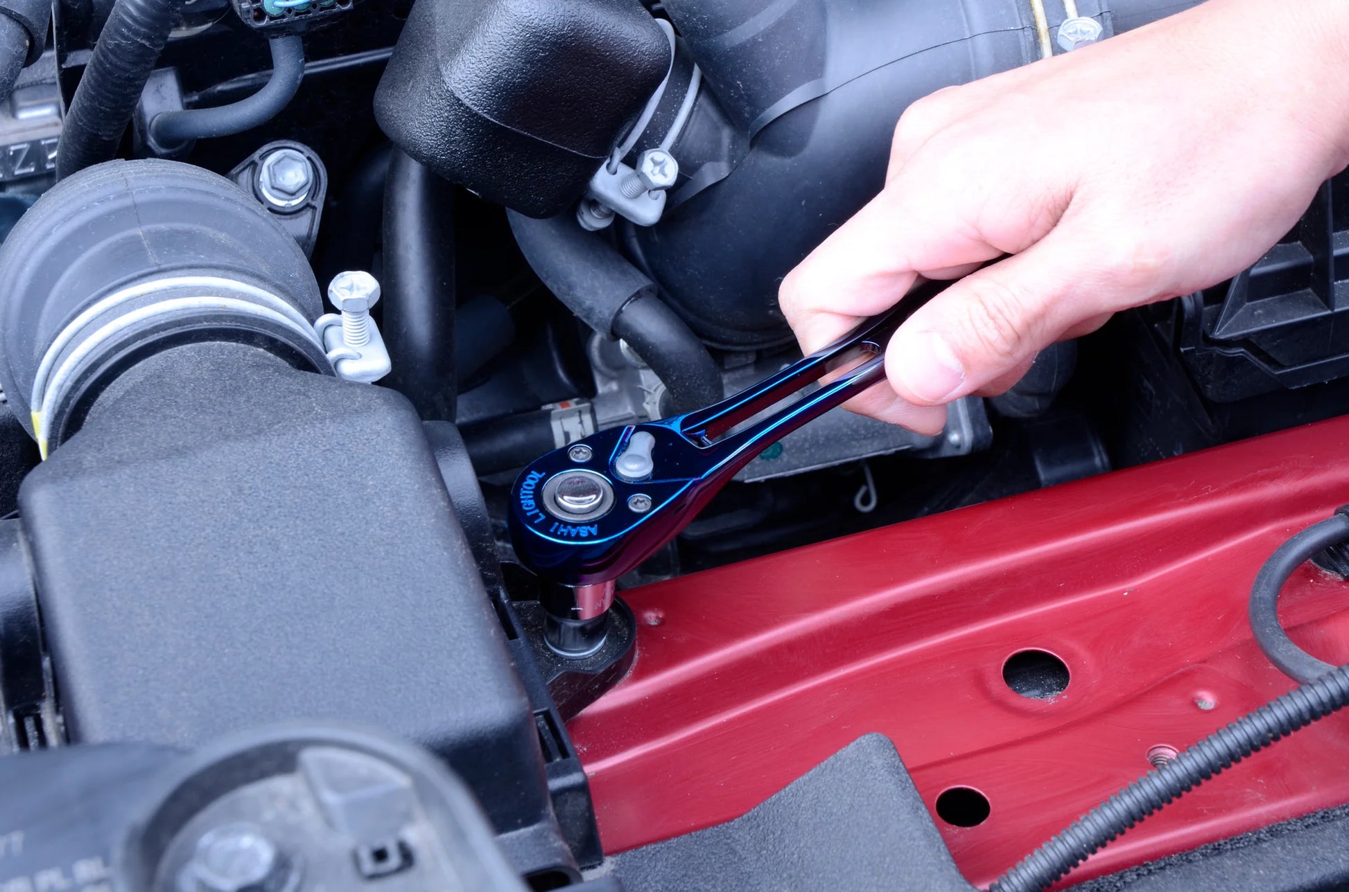 • Fine Tactile blue Ion plated 3/8 in. drive light ratchet. ASAHI Tactile is a special coating to give them a beautiful unique design, wear resistance, grippy texture, and antibacterial properties.