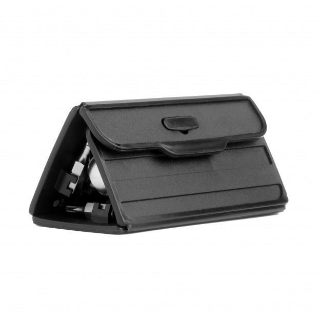 • Foldable case with belt clip for easy storage. Bit size indicators printed for easy identification. Case length: 3 3/4" Case width: 2".