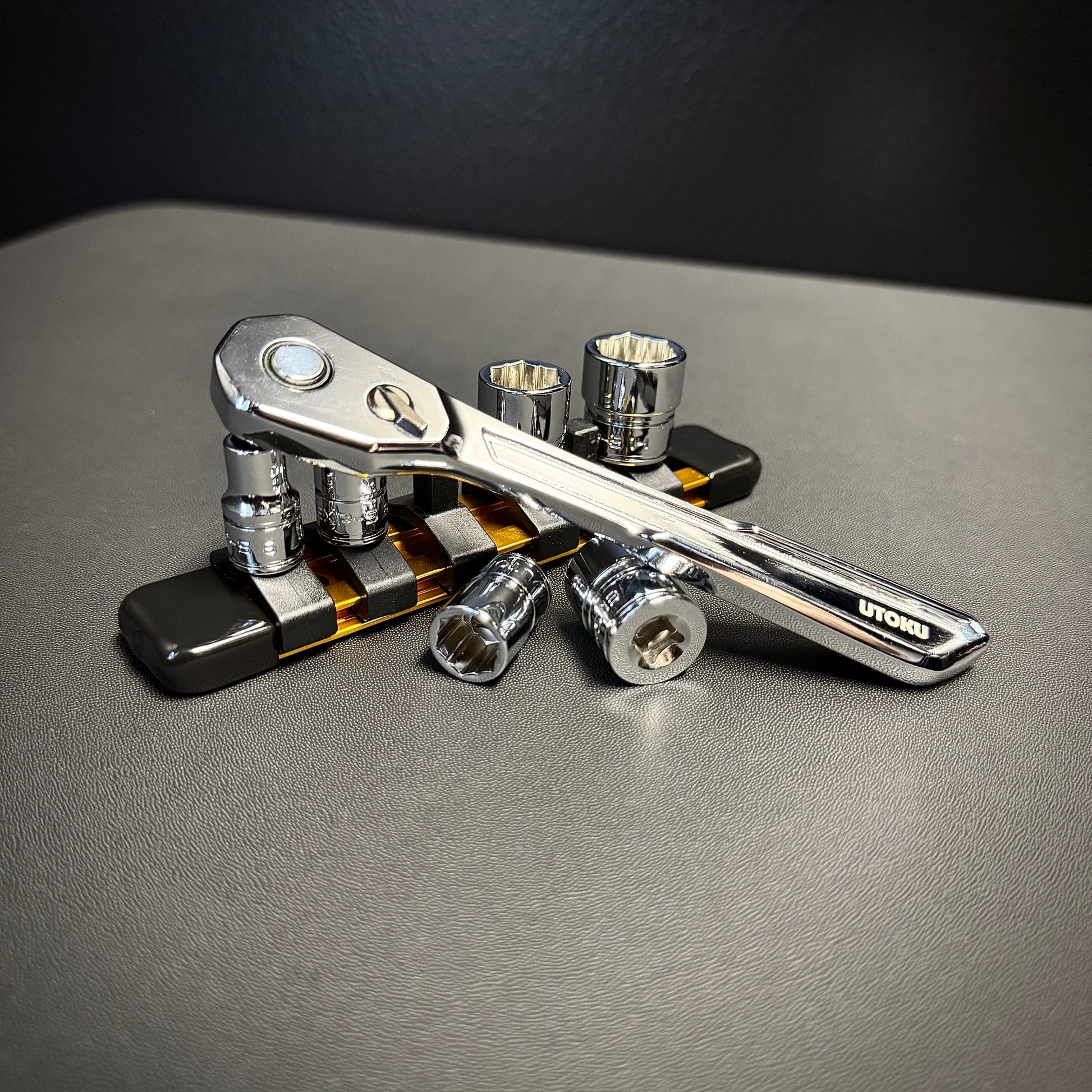 • Exclusive gold aluminum anodized socket rail with UTOKU logo.