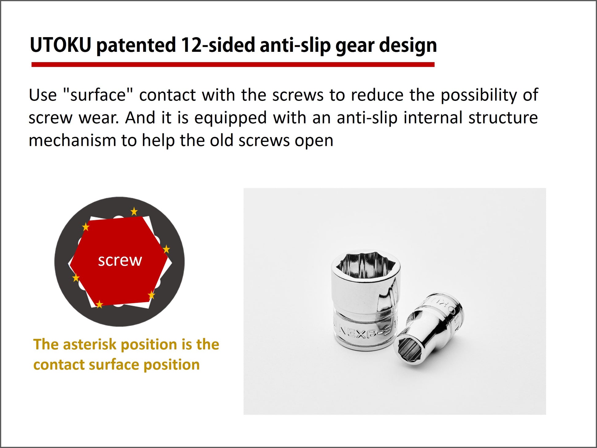 • Anti-slip sockets made with tool grade chromium vanadium alloy steel.
